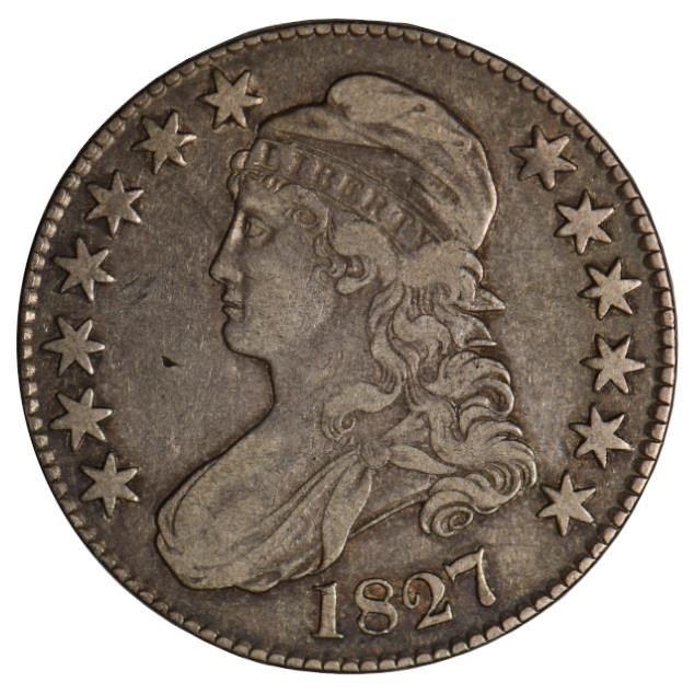 One 1827 Capped Bust Half Dollar Coin.