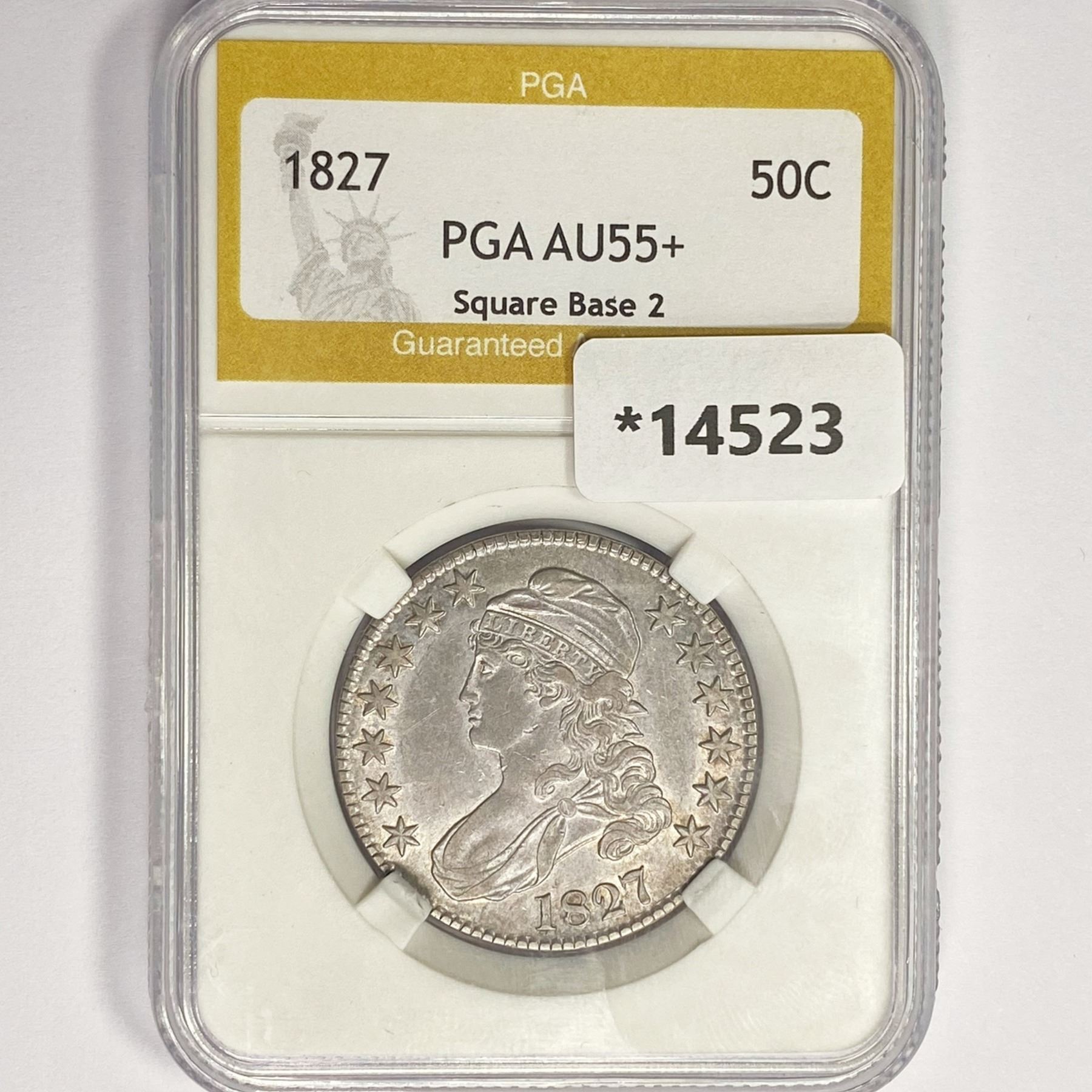 1827 Capped Bust Half Dollar PGA AU55+ Sq Base 2