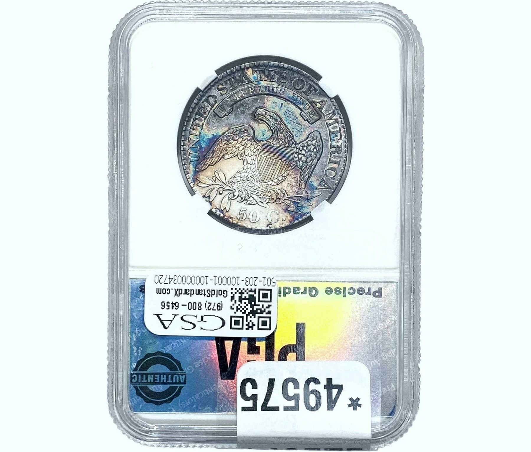 l. All non-certified coins and currency are guaranteed genuine, but are not guaranteed as to grade, since grading is a matter of opinion, an art and not a science, and therefore the description rendered by GSA or any third-party grading service may not agree with the opinion of others (including trained experts), and the same expert may not grade the same item with the same grade at two different times. GSA may, but is not obligated to, express an opinion as to non-certified numismatic items, in GSA’s opinion, or by its employees’ experience and the current interpretation of the American Numismatic Association’s standards as of the date the catalog was prepared. There is no guarantee or warranty expressed or implied that the grading opinions utilized by GSA, if any, will meet the standards of any grading service at any time in the future.