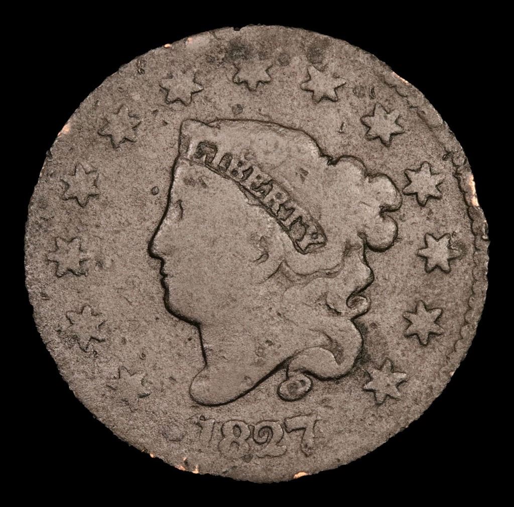 1827 . 1827Coronet Head 1cf15 Coronet Head Large Cent 1c Grades f+.