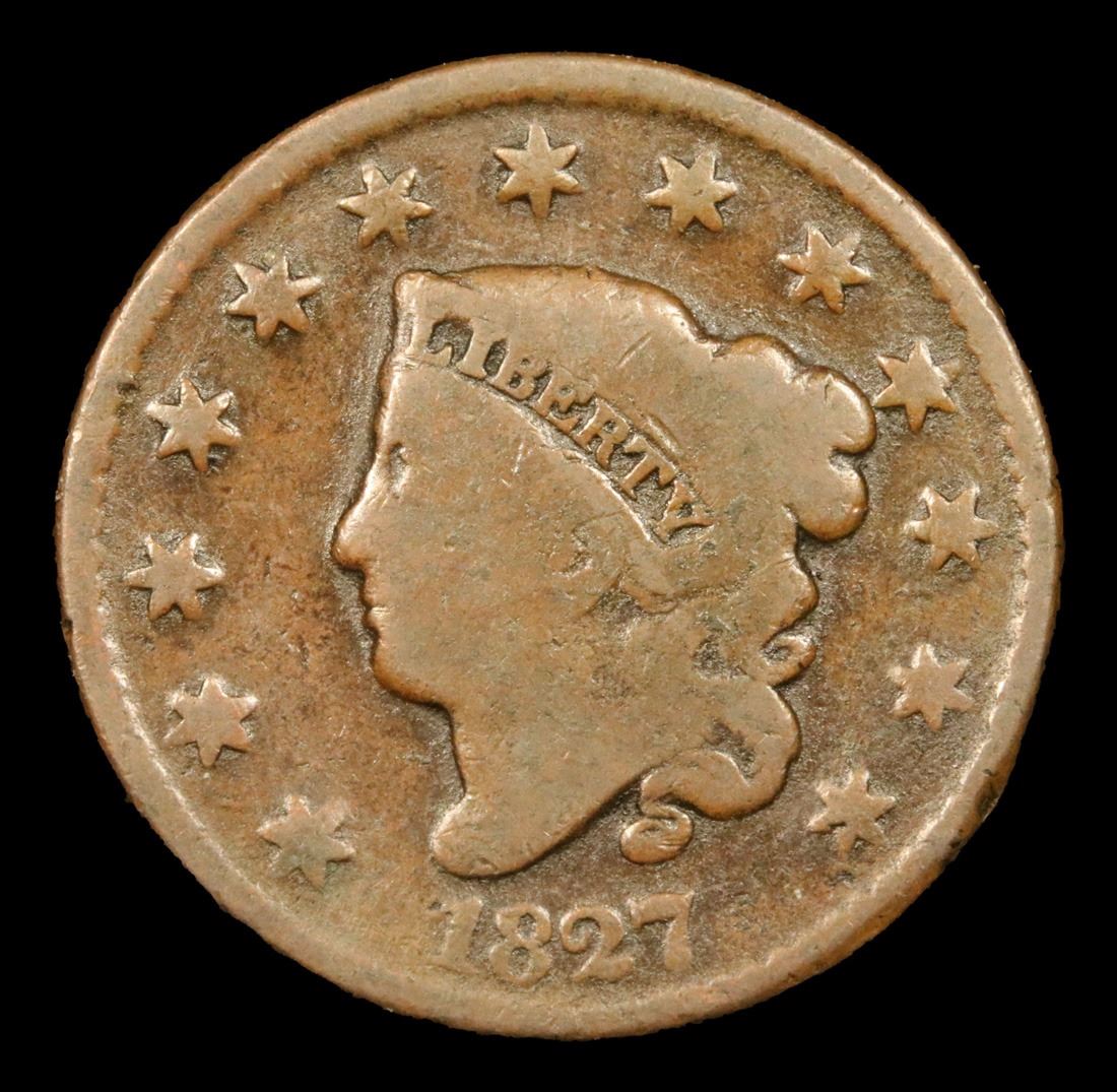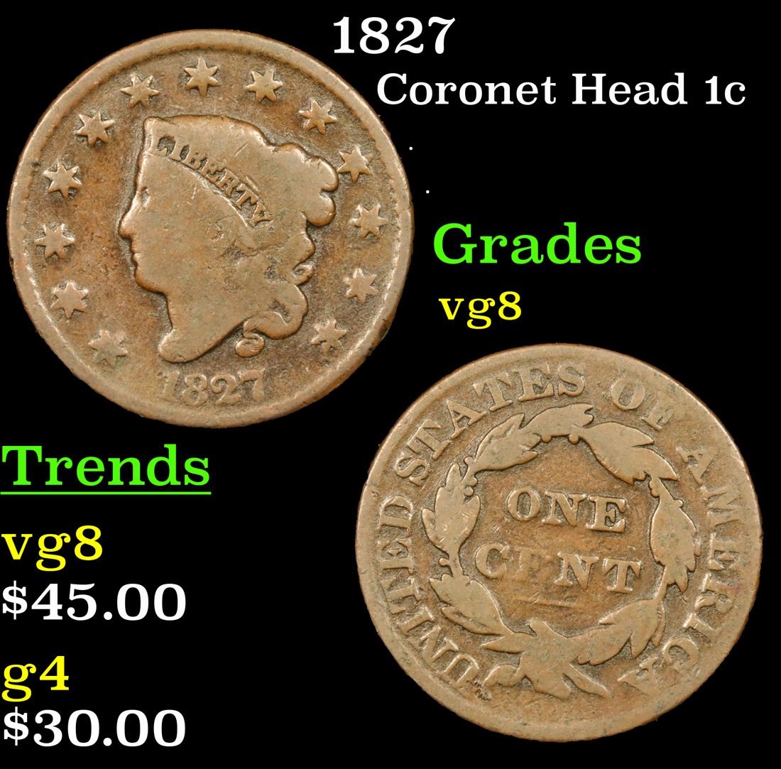 1827 . . Coronet Head Large Cent 1c Grades vg, very good.