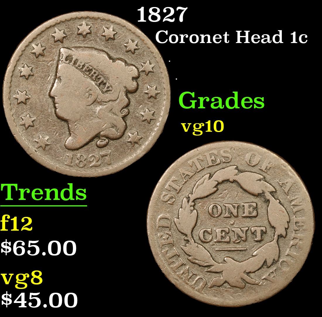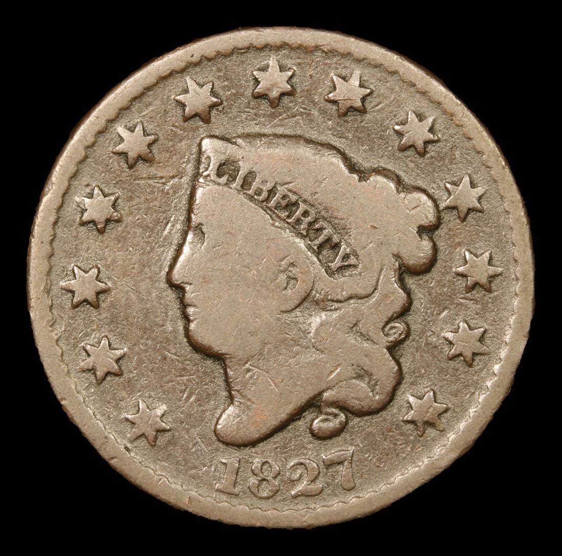 1827 . . Coronet Head Large Cent 1c Grades vg+.