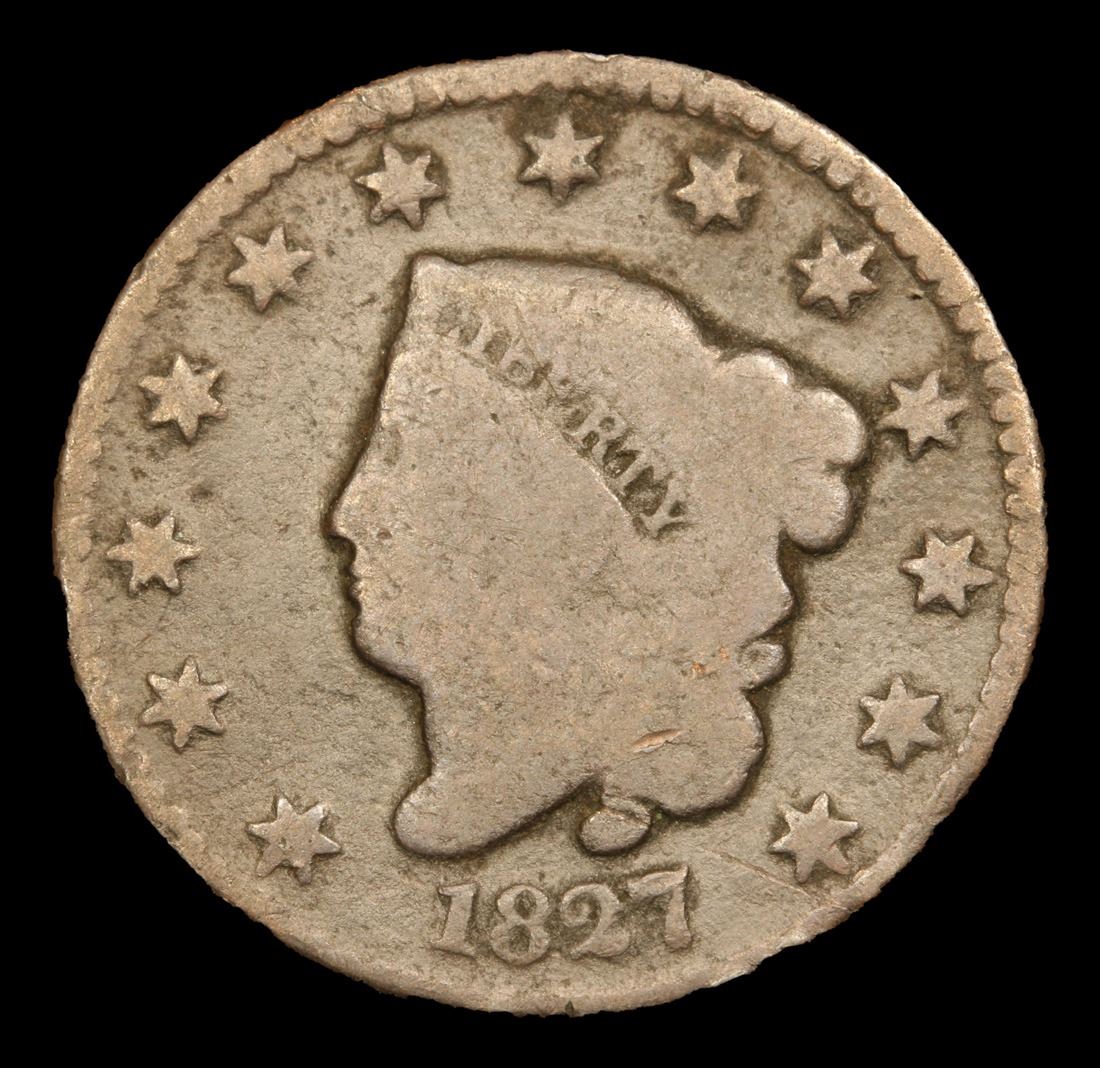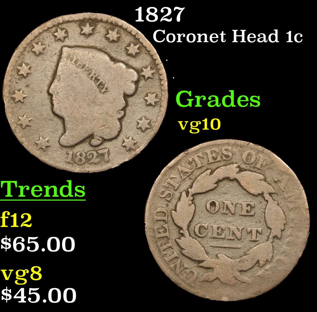1827 . . Coronet Head Large Cent 1c Grades vg+.