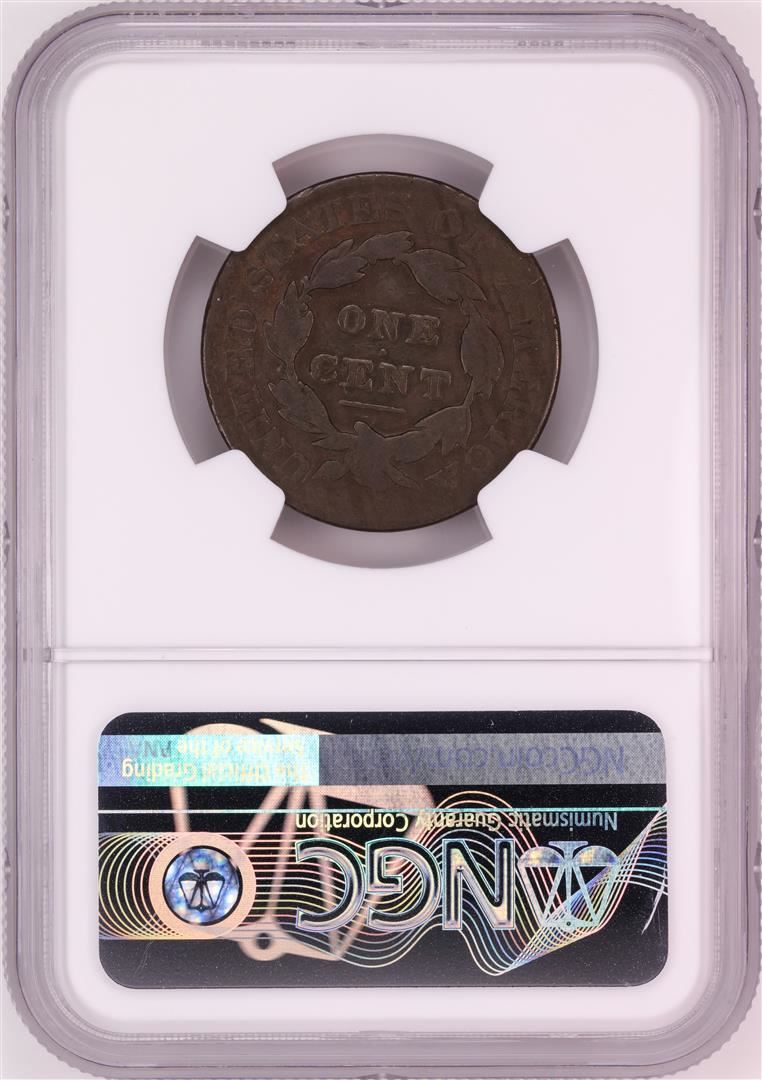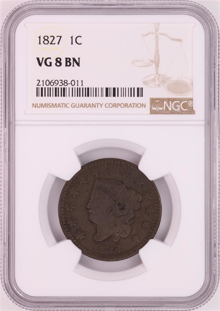 One 1827 Coronet Head Large Cent Coin NGC VG8BN. NGC Certified.