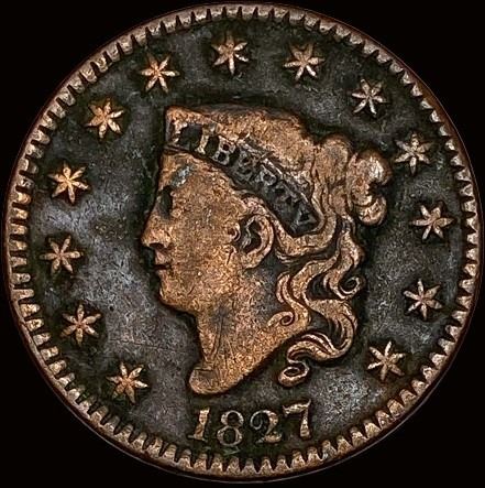 1827 Coronet Head Large Cent LIGHTLY CIRCULATED