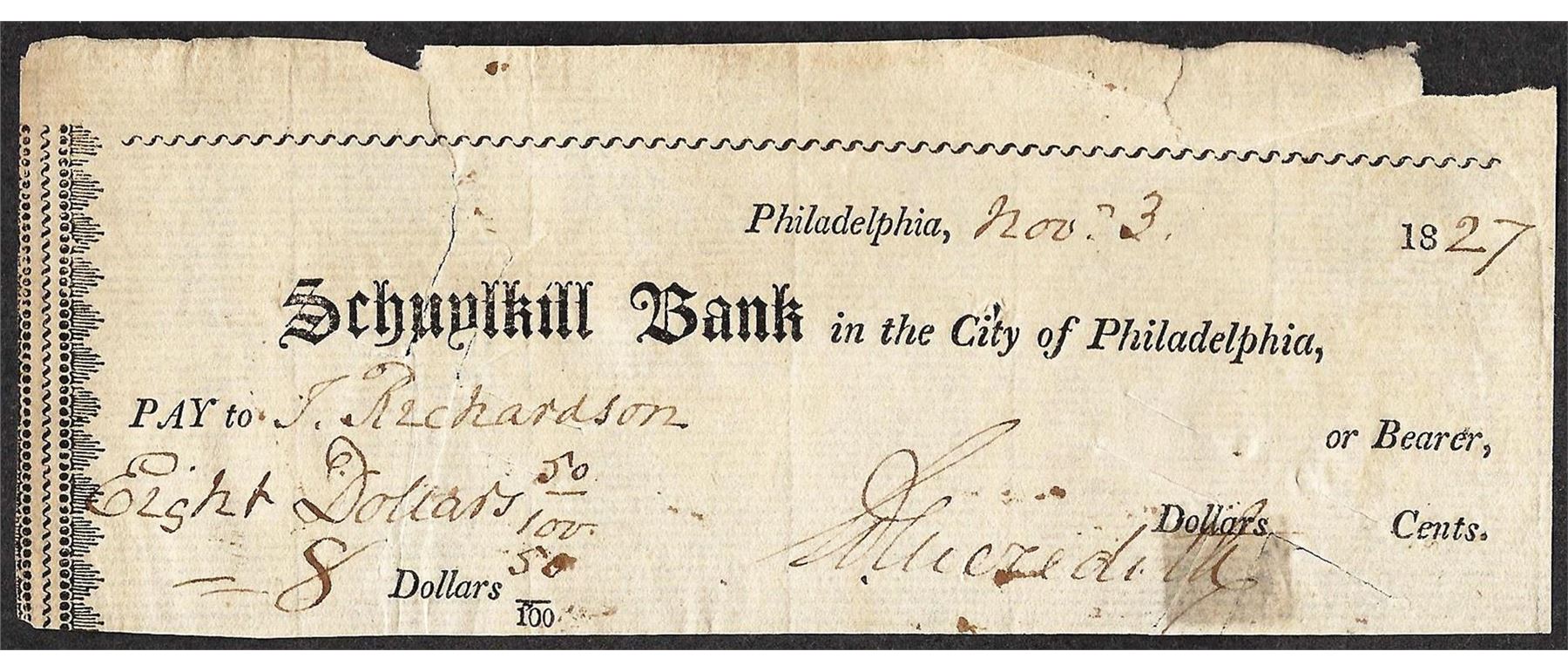 One 1827 Schuylkill Bank Obsolete Note- Holes & Tears.