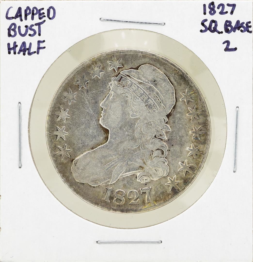One 1827 Square Base 2 Capped Bust Half Dollar Coin.