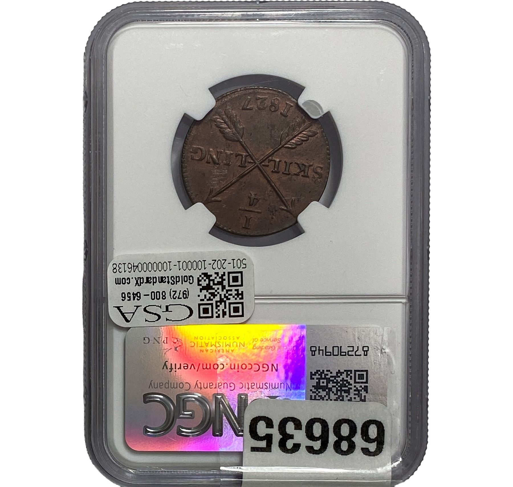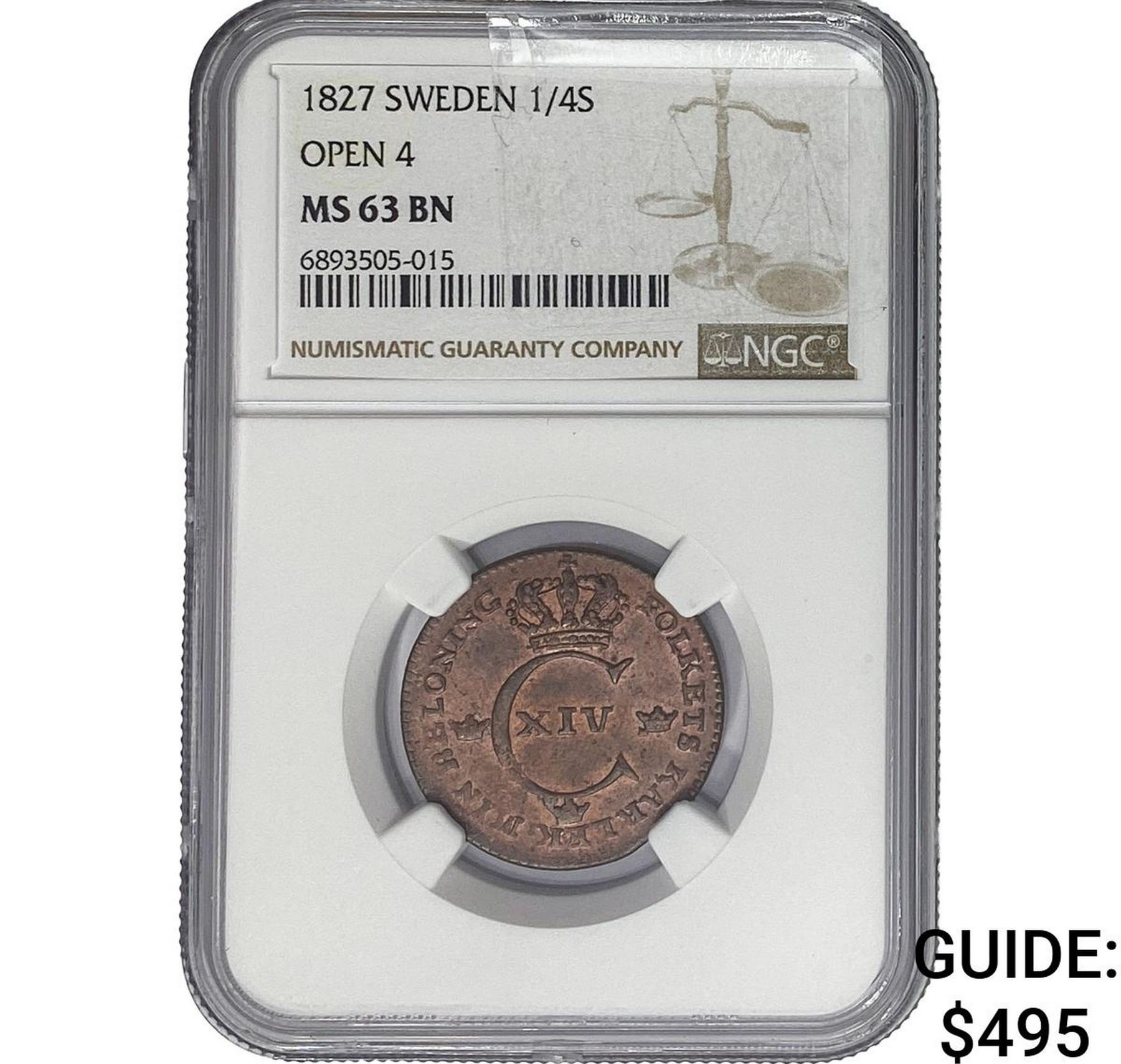 1827 Sweeden 1/4S Open 4 NGC MS63 BN