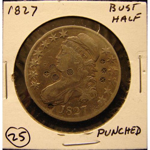 1827 U.S. BUST HALF DOLLAR. Punched.