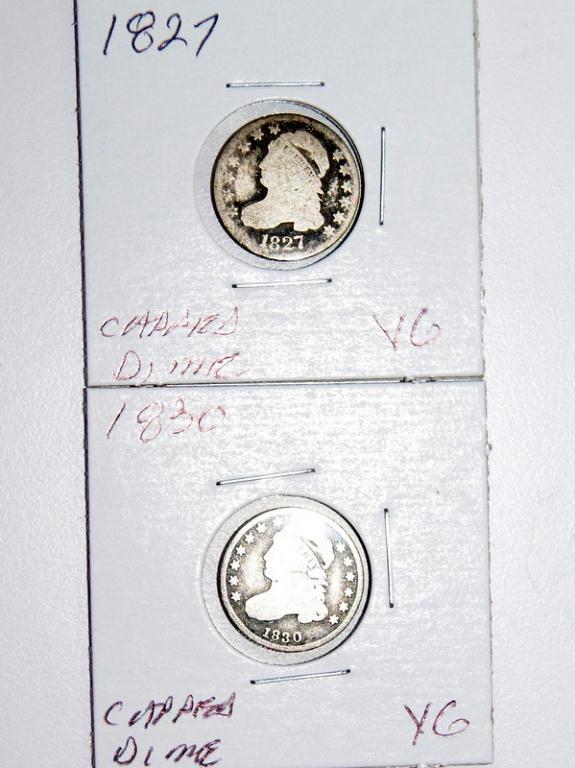 (2) Capped Bust Silver Dimes - 1827 and 1830 - Graded Very Good - Sold Times the Money 1827 and 1830 VG Silver Dime Capped Bust