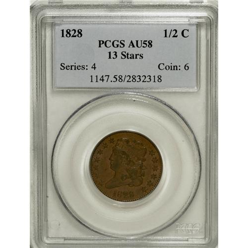1828 1/2 C 13 Stars AU58 PCGS. PCGS Population (84