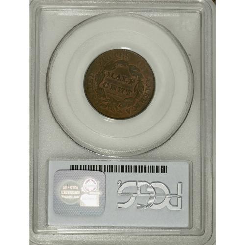 <B>1828 1/2 C 13 Stars MS64 Brown PCGS.</B></I> C-3, B-2, R.1. The reverse is more than half golden-tan with selected areas of medium to deep brown toning. The obverse is the opposite, primarily dark brown with lighter chocolate-brown near the date. Crisply struck and smooth aside from a solitary thin line above the jaw. EAC 50.<BR><BR><b>Shipping:</b> Coins & Currency (<a target="_blank" href="http://www.heritageauctions.com/common/shipping.php">view shipping information</a>)