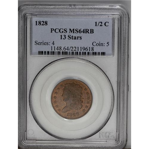 1828 1/2 C 13 Stars MS64 Red and Brown PCGS. C-3, B-2,