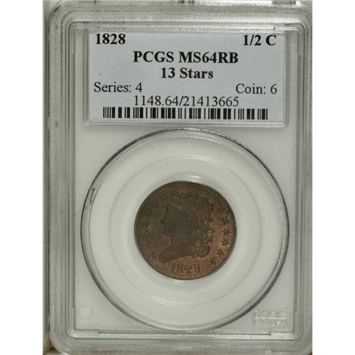 1828 1/2 C 13 Stars MS64 Red and Brown PCGS. C-3, B-2,