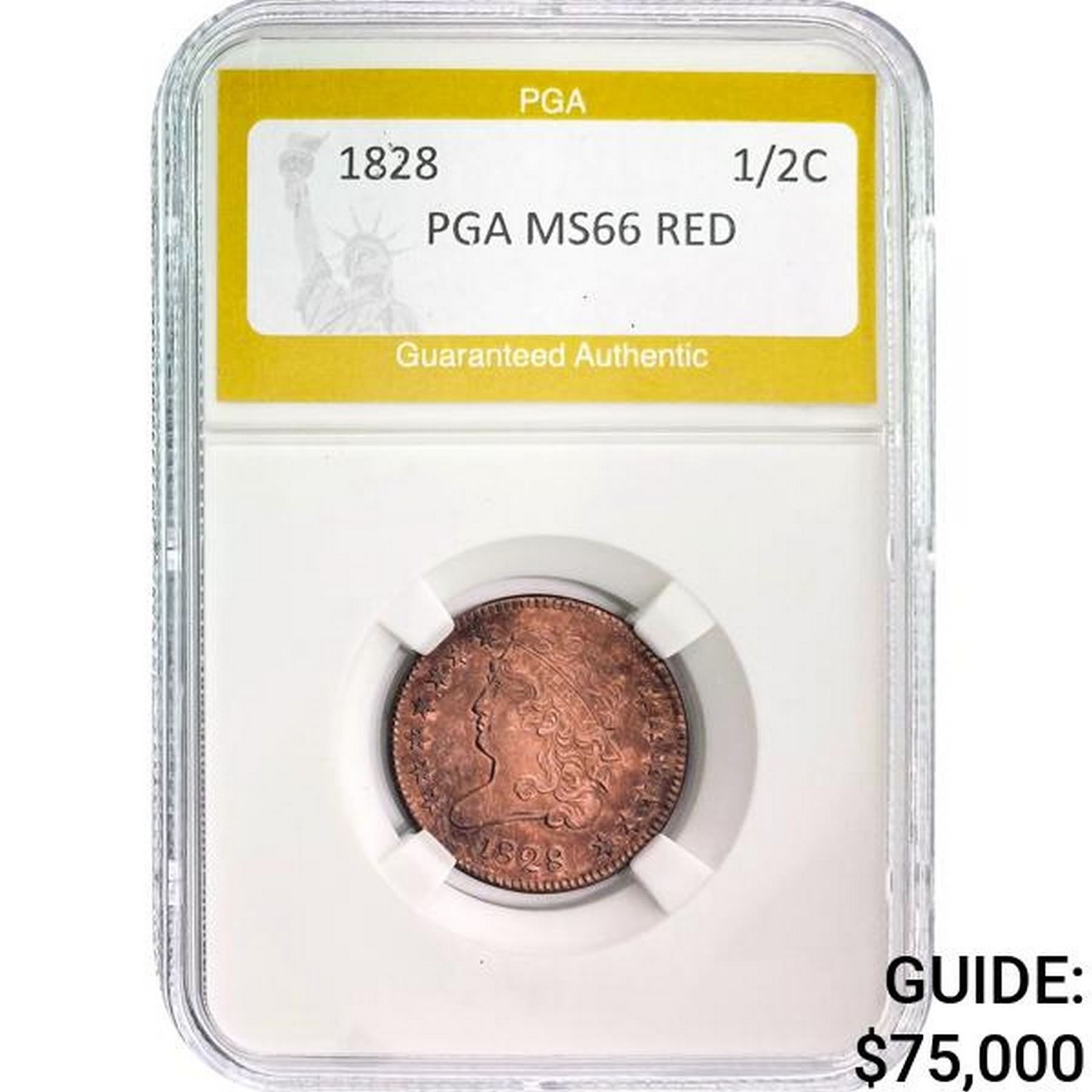 1828 1/2C PGA MS66 RED