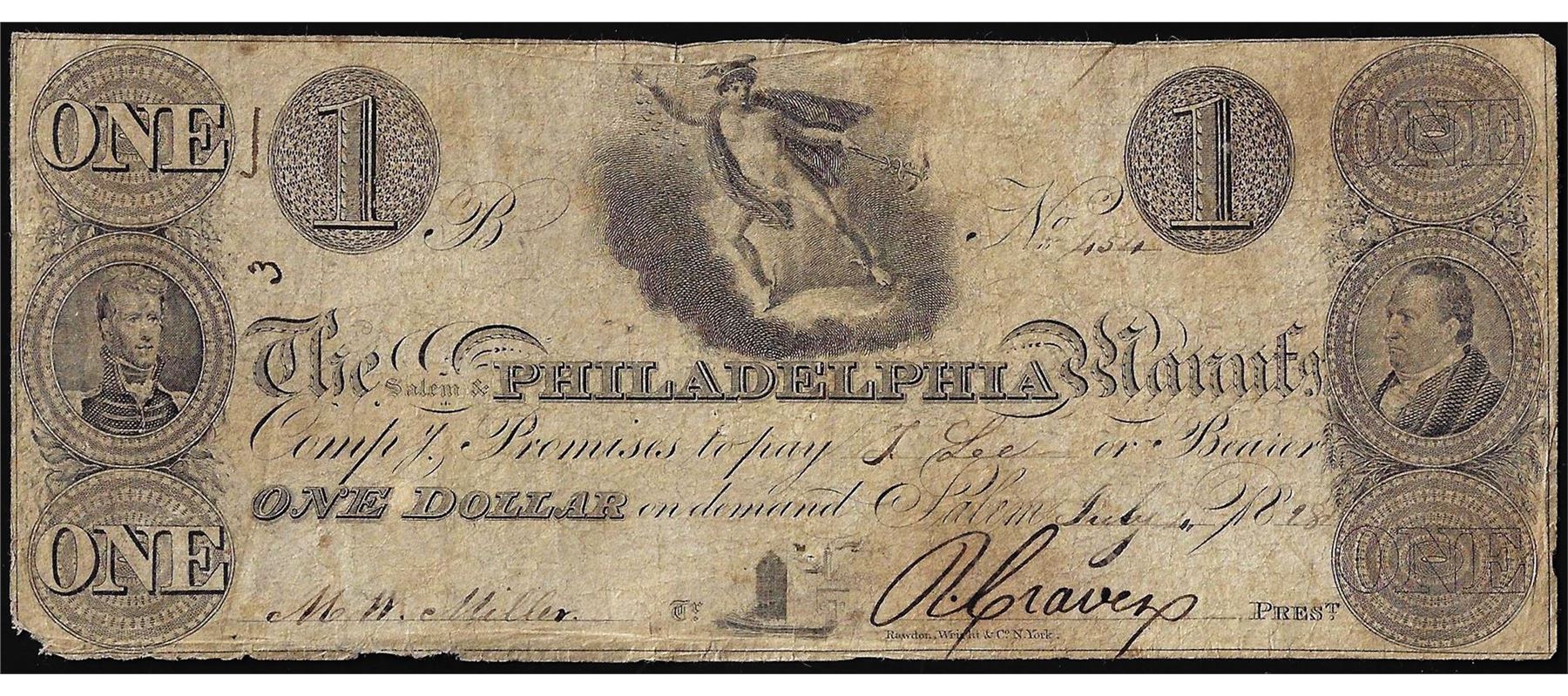 1828 $1 Salem & Philadelphia Manufacturing Compy Salem, NJ Obsolete Note