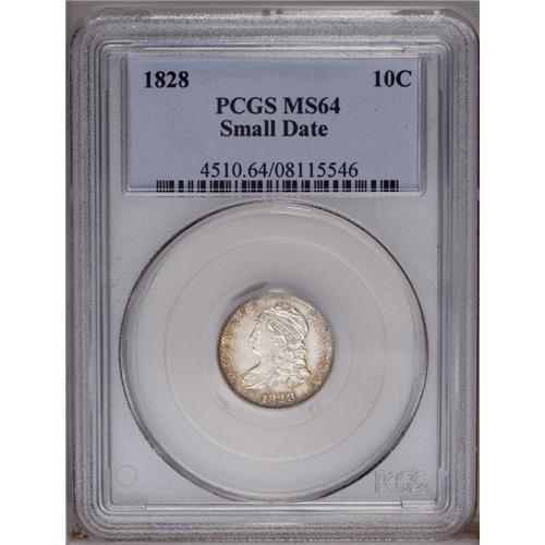 1828 10C Small Date MS64 PCGS. JR-1, R.2. The Small Da 1828[10C] Small Date MS64 PCGS.