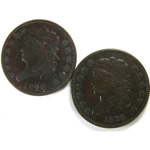 1828 13 Stars and 1829. Two pieces, both VF and lightly cleaned