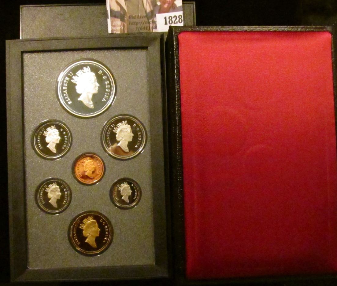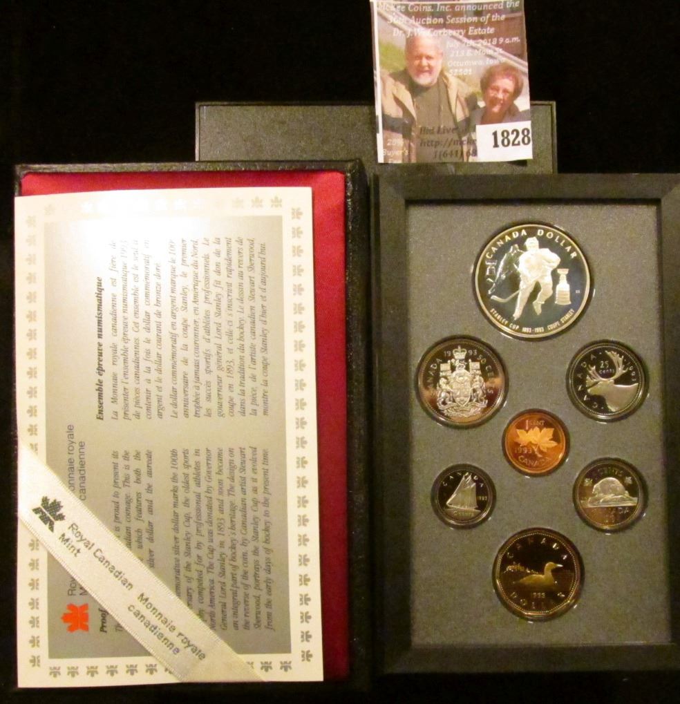1993 Double Dollar Canadian Proof Set. The Dollar With The Hockey Player Is Silver. The Set Is Leatherbound and The Coins Are Cameo