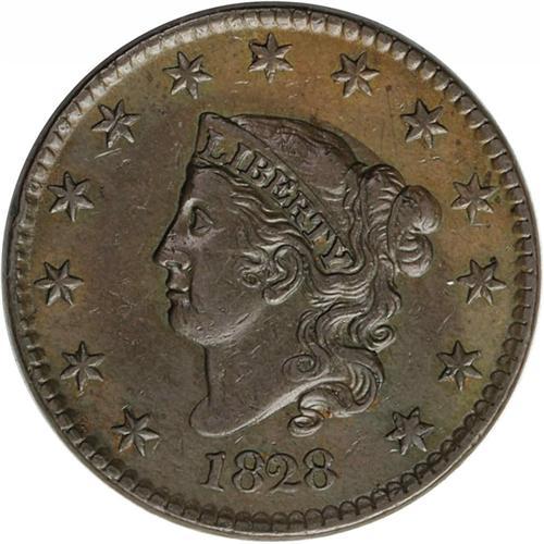 1828 1C Large Narrow Date AU53 NGC. N-3, R.2. Light br 1828[1C] Large Narrow Date. N-3, R.2. AU53 NG