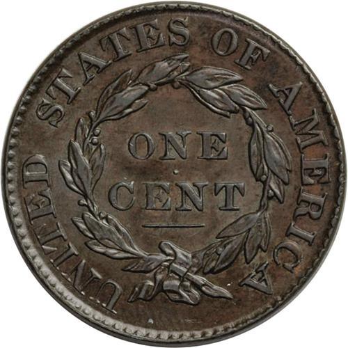 <B>1828<1C> Large Narrow Date. N-11, R.2. AU58 NGC. AU50 EAC.</B></I> Late Die State. From the same dies as the prior lot, but the reverse die has been lapped, removing evidence of the offending misplaced S and O punches. This dark brown piece has faint friction on the cheek, but the smooth surfaces are not abraded, although the obverse has a tiny rim ding at 4:30.<BR><I>Ex: George Ramont (5/13/1981).</B></I> Envelope Included.