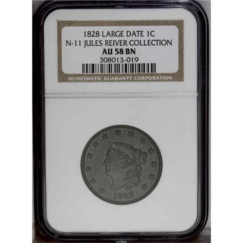 1828 1C Large Narrow Date AU58 NGC. N-11, R.2. NDS B. 1828[1C] Large Narrow Date. N-11, R.2. AU58 NG