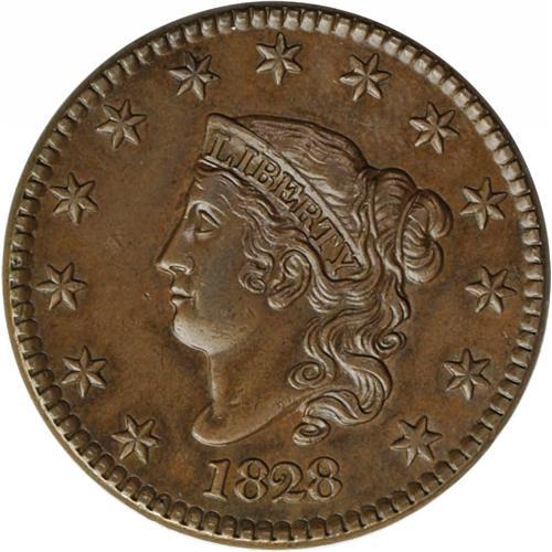 1828 1C Large Narrow Date AU58 NGC. N-2, R.2. NDS A, p 1828[1C] Large Narrow Date. N-2, R.2. AU58 NG