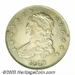 <TABLE cellSpacing=0 cellPadding=0 width="100%" bgColor=#000000 border=0><TBODY><TR><TD width="100%"><TABLE cellSpacing=1 cellPadding=3 width="100%" border=0><TBODY><TR><TD width="100%" bgColor=#79735c><FONT face=arial color=#ffffff size=3><B>Description</B> </FONT></TD></TR><TR><TD width="100%" bgColor=#ffffff><FONT face=arial size=2><B>1828 25C 25/50C--Cleaned--ANACS. AU Details, Net AU50.</B></I> B-3, R.4. A popular <I>Guide Book</B></I> variety that originated when the absent-minded engraver initially entered the wrong denomination into the die. The reverse die was first used with 1822-dated coinage, then was resurrected years later to create the scarce Browning-3 variety. Freckles of die rust (as made) below the left edge of the scroll attest to its storage within the Philadelphia Mint vault. No hairlines appear beneath the pearl-gray and apple-green patina, and rub is mostly limited to Liberty's nose and mouth. Accompanied by an old-time envelope with the handwritten annotation "Sidney Smith (MANA) 10/63" and a cotton-lined envelope from Richard Picker. </FONT></TD></TR></TBODY></TABLE></TD></TR></TBODY></TABLE><BR><A name=PricesRealized></A><TABLE cellSpacing=0 cellPadding=0 width="100%" bgColor=#000000 border=0><TBODY><TR><TD width="100%"><TABLE cellSpacing=1 cellPadding=3 width="100%" border=0><TBODY><TR><TD width="100%" bgColor=#79735c><A name=PR><FONT face=arial color=#ffffff size=3><B>Previous Prices from Heritage Auctions</B> </FONT></A></TD></TR><TR><TD bgColor=#f6f6ed>No Prior Data Recorded </TD></TR><TR><TD bgColor=#ffffff><FONT face=arial size=1 ?>PLEASE NOTE: All prices realized reflect the final hammer price PLUS the buyer's premium in auctions that charge a buyer's premium. Each item has a notation at the top of the listing indicating whether that lot included a buyer's premium. Example: A item that sells with a final hammer price of $100 and a 20% buyer's premium will display with a price realized of $120. All information listed is intended to be as accurate as possible, but errors are possible. Please use this guide carefully and inform us of any inaccuracies. </FONT></TD></TR></TBODY></TABLE></TD></TR></TBODY></TABLE><BR><TABLE cellSpacing=0 cellPadding=0 width="100%" bgColor=#000000 border=0><TBODY><TR><TD width="100%"><TABLE cellSpacing=1 cellPadding=3 width="100%" border=0><TBODY><TR><TD width="100%" bgColor=#79735c colSpan=6><FONT face=arial color=#ffffff size=3><B>Price Guide*</B> </FONT></TD></TR><TR bgColor=#f6f6ed><TD align=middle><B>Grade</B> </TD><TD align=middle><B>Coin World<BR>(Trends)</B> </TD><TD align=middle><B>Numismedia<BR>Retail</B> </TD><TD align=middle><B>Numismedia<BR>Wholesale</B> </TD><TD align=middle><B>Coin<BR>Universe</B> </TD><TD align=middle><B>Heritage<BR>Value Index</B> </TD></TR><TR bgColor=#ffffff><TD align=middle>45</TD><TD align=right>---</TD><TD align=right>---</TD><TD align=right>---</TD><TD align=right>---</TD><TD align=right>$1,504.17</TD></TR><TR style="FONT-WEIGHT: bold" bgColor=#cccfdd><TD align=middle>50</TD><TD align=right>---</TD><TD align=right>---</TD><TD align=right>---</TD><TD align=right>---</TD><TD align=right>$1,967.08</TD></TR><TR bgColor=#ffffff><TD align=middle>53</TD><TD align=right>---</TD><TD align=right>---</TD><TD align=right>$3,550.00</TD><TD align=right>---</TD><TD align=right>$2,501.33</TD></TR><TR bgColor=#ffffff><TD colSpan=6><FONT size=1>*All information listed is intended to be as accurate as possible, but errors are possible. No item may be returned or refused based on this information which is provided as a service to our customers. You should contact each pricing source directly to determine the accuracy of this information. </FONT></TD></TR></TBODY></TABLE></TD></TR></TBODY></TABLE><BR><TABLE cellSpacing=0 cellPadding=0 width="100%" bgColor=#000000 border=0><TBODY><TR><TD width="100%"><TABLE cellSpacing=1 cellPadding=3 width="100%" border=0><TBODY><TR><TD width="100%" bgColor=#79735c><FONT face=arial color=#ffffff size=3><B>Population Guide</B> </FONT></TD></TR><TR bgColor=#ffffff><TD align=middle><!-- Begin Output of Population Grid--><TABLE cellSpacing=0 cellPadding=0 width="100%" border=0><TBODY><TR><TD vAlign=center><TABLE cellSpacing=0 width="100%" border=1 cellsadding="3"><TBODY><TR><TD vAlign=center><TABLE cellSpacing=0 cellPadding=3 width="100%" border=1><TBODY><TR><TD vAlign=center align=middle bgColor=#f0f1e8 colSpan=2 <CENTER><FONT face=Arial size=2><B>PCGS Pop </B></FONT><CENTER></CENTER></TD><TD vAlign=center align=middle bgColor=#f0f1e8 colSpan=2><CENTER><FONT face=Arial size=2><B>NGC Pop</B></CENTER></FONT></TD></TR><TR><TD vAlign=center><FONT face=Arial size=2>(50)</FONT> </TD><TD vAlign=center align=right><FONT face=Arial size=2>1</FONT> </TD><TD vAlign=center><FONT face=Arial size=2>(50)</FONT> </TD><TD vAlign=center align=right><FONT face=Arial size=2>0</FONT> </TD></TR><TR><TD vAlign=center><FONT face=Arial size=2>(>50)</FONT> </TD><TD vAlign=center align=right><FONT face=Arial size=2>5</FONT> </TD><TD vAlign=center><FONT face=Arial size=2>(>50)</FONT> </TD><TD vAlign=center align=right><FONT face=Arial size=2>8</FONT> </TD></TR></TBODY></TABLE></TD></TR></TBODY></TABLE></TD></TR></TBODY></TABLE><!-- End Output of Population Grid--> Important notice: Heritage usually auctions material at the rate of 200-250 lots per hour. On some occasions eBay Live bid software or the Internet may not be able to keep up with the pace of the auction. We recommend placing a realistic absentee bid now as insurance to avoid disappointment. Occasionally the auctioneer may eliminate or reject an eBay Live bid, and the auctioneer may also reopen a lot after the close of the eBay live bidding (usually because we missed an audience bid), and may reject your bid even if it shows you as the winning bidder. By bidding via eBay Live, you agree that Heritage may award the lot to another bidder at its sole discretion under the circumstances described above or any other reasonable circumstances. Also please