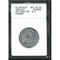 1828 25C 25/50C--Cleaned--ANACS. AU Details, Net AU50.