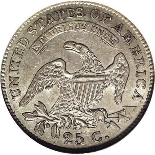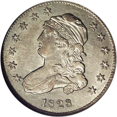 <B>1828<25C> AU55 NGC.</B></I> B-1, R.1. Well struck and satiny, with light wear on some of the design highpoints, Although there are a few faint hairlines in the fields, the unabraded surfaces display pleasing pastel coloration.