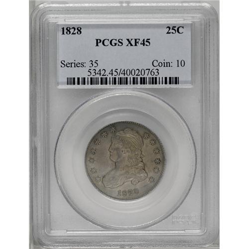 1828 25C XF45 PCGS. B-1, R.1. A sharply impressed gunm 1828[25C] XF45 PCGS.