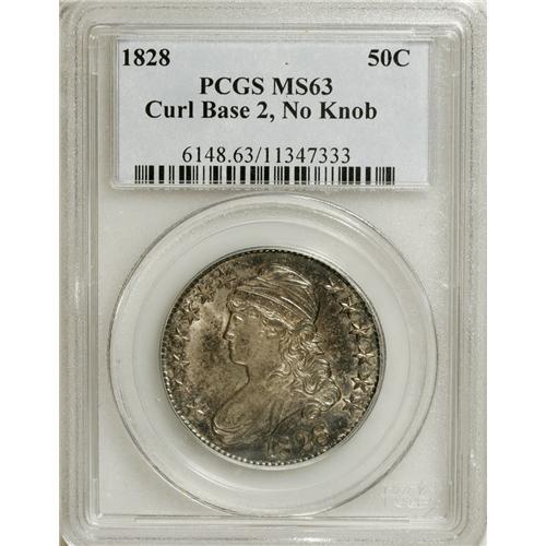 1828 50C Curl Base 2, No Knob MS63 PCGS. O-103, R.2. T