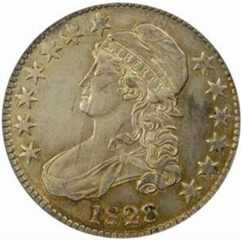 1828 50C. O-123 Rarity-5+. Square Base 2, Small 8s Large Letters. EFDetails-Improperly Cleaned (NCS)