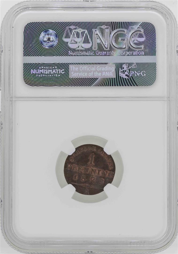 One 1828-A Germany-Prussia Friedrich Wilhelm II Pfenning NGC MS65BN. NGC Certified.