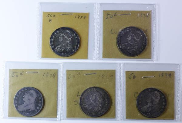 1828 Bust Half Dollars, 5 pieces. Good - EF.
