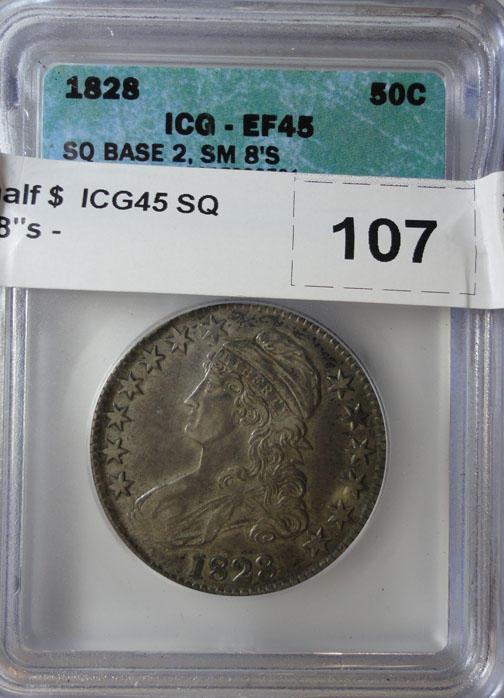 1828 Bust half $ ICG45 SQ base 2 SM 8"s