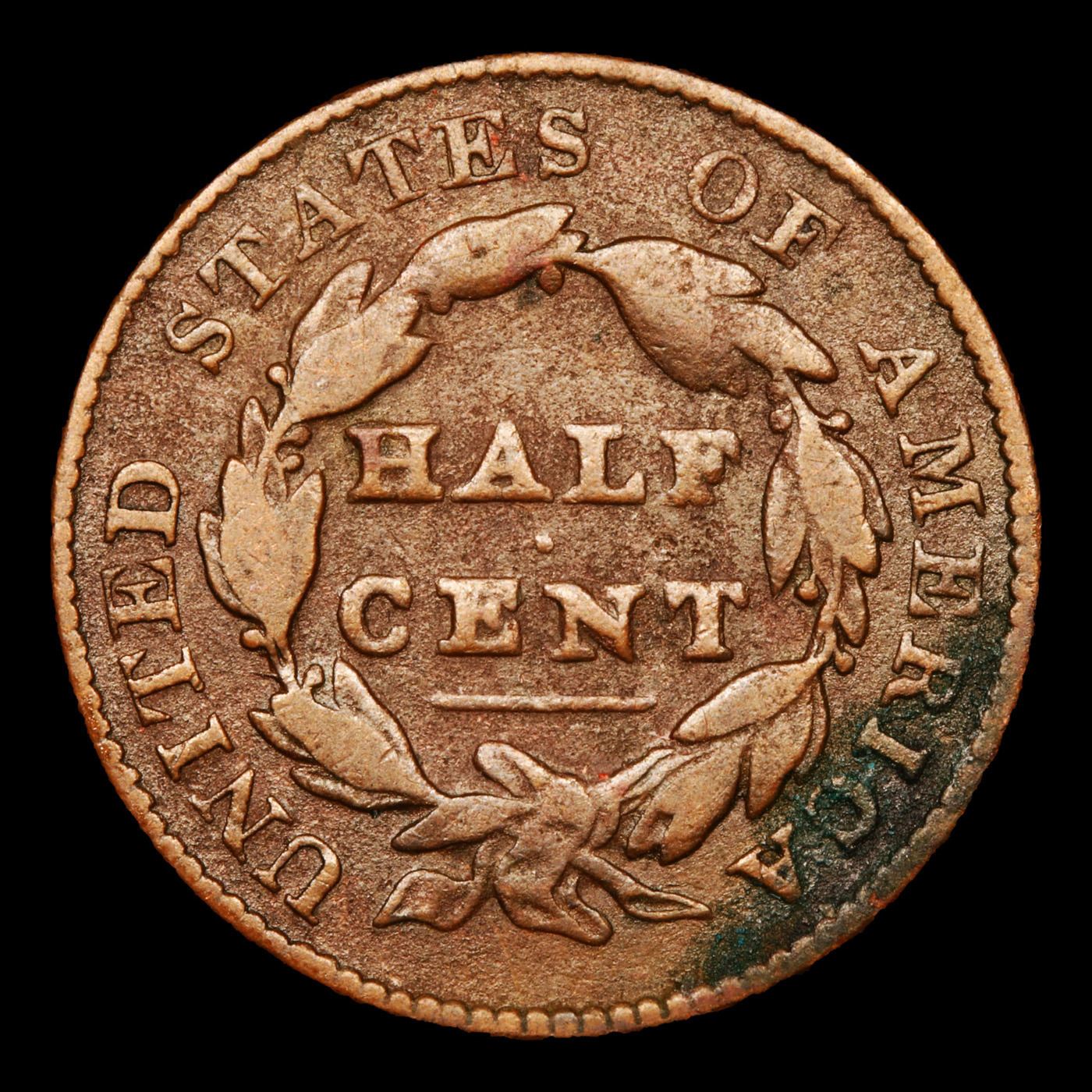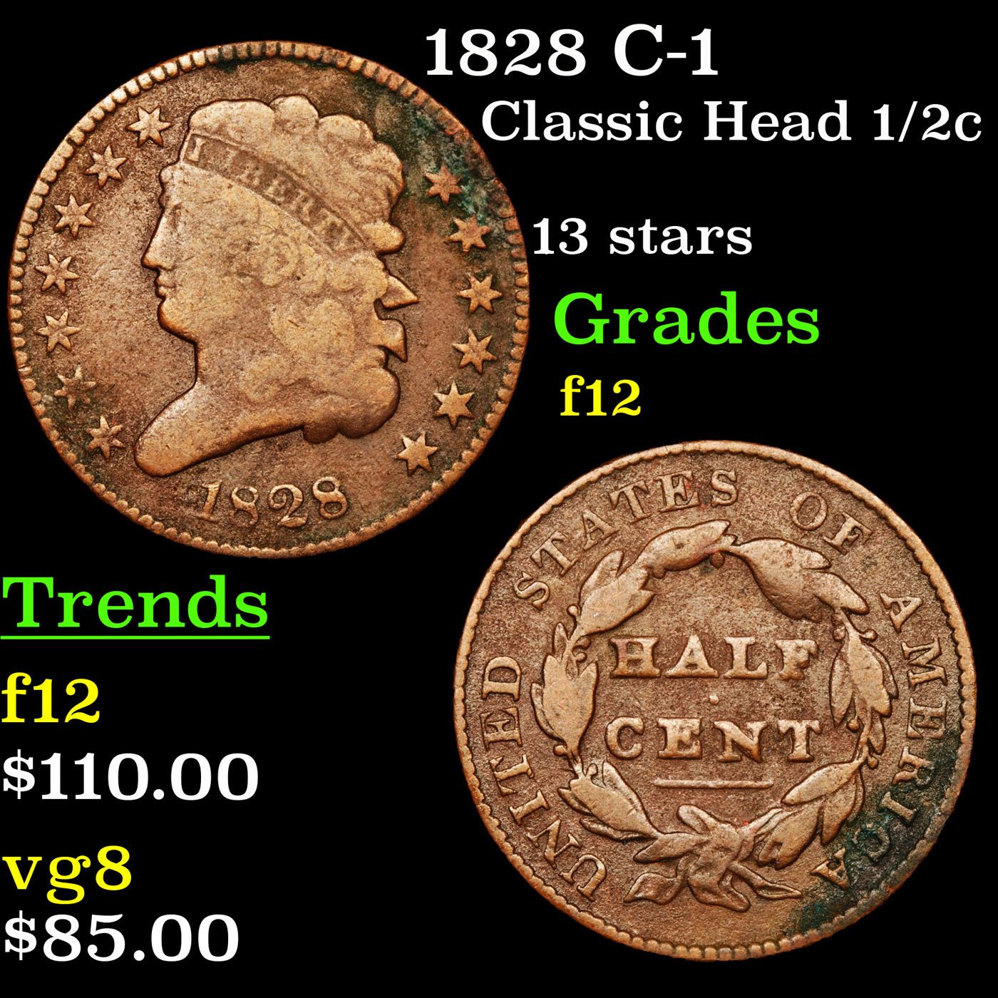 1828 C-1 Classic Head half cent 1/2c Graded f, fine.