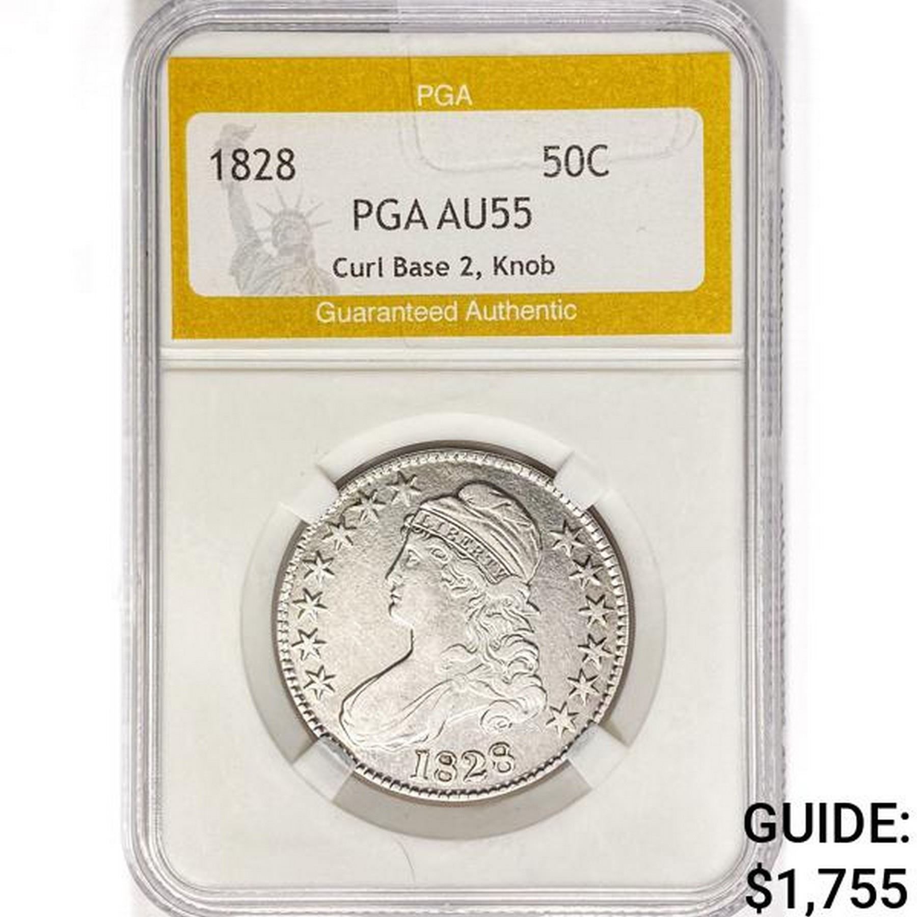 1828 Capped Bust 50C PGA AU55 Curl Base 2, Knob