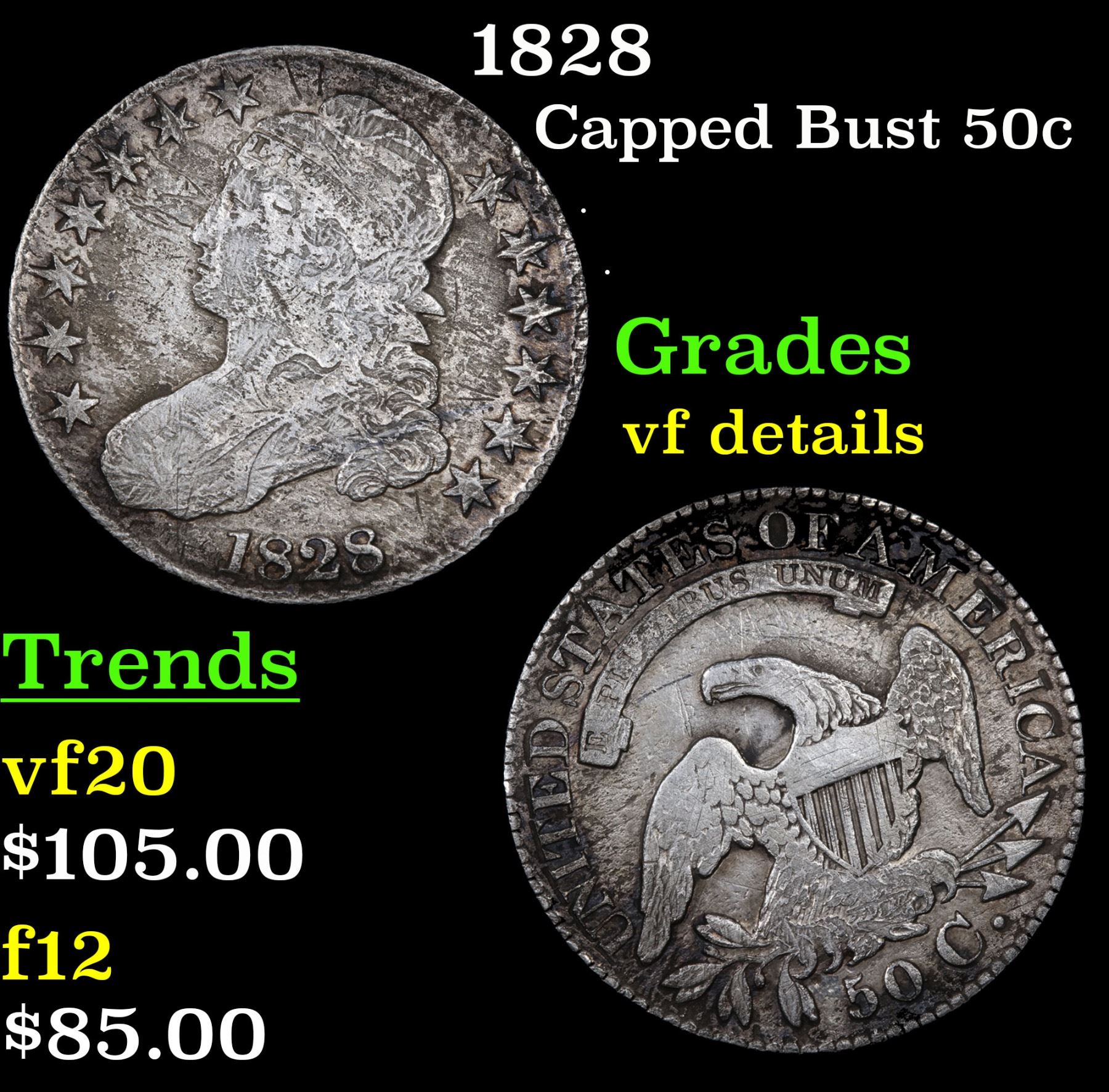 1828 Capped Bust Half Dollar 50c Grades vf details.
