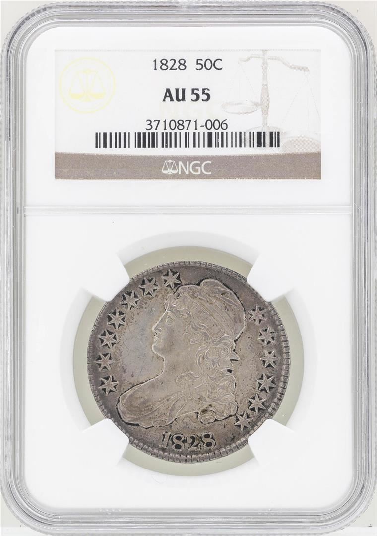 One 1828 Capped Bust Half Dollar Coin NGC AU55. NGC Certified.