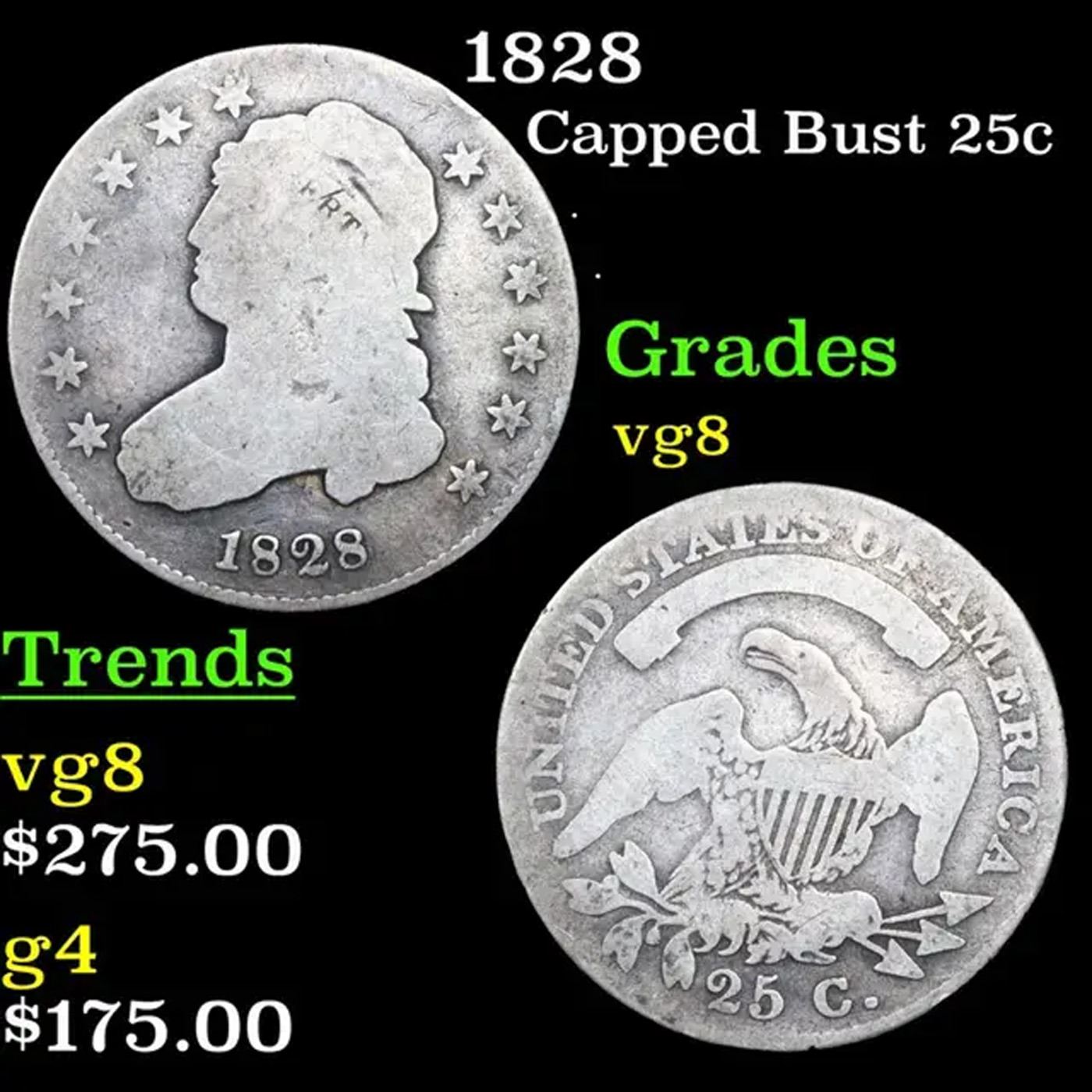 1828 Capped Bust Quarter 25c Grades vg, very good.