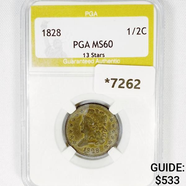 1828 Classic Head Half Cent PGA-MS60 13 Stars