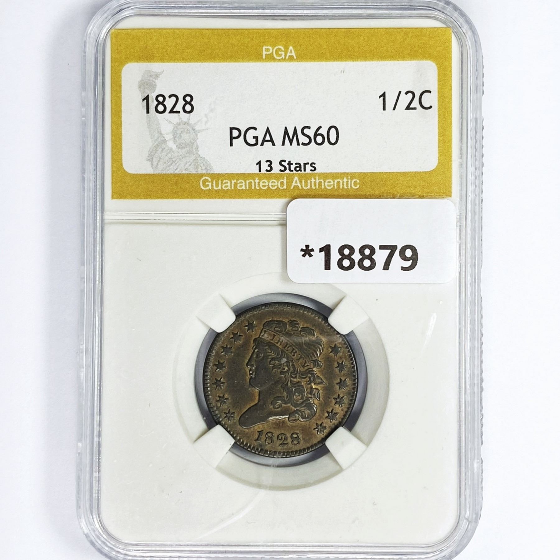 1828 Classic Head Half Cent PGA MS60 13 Stars