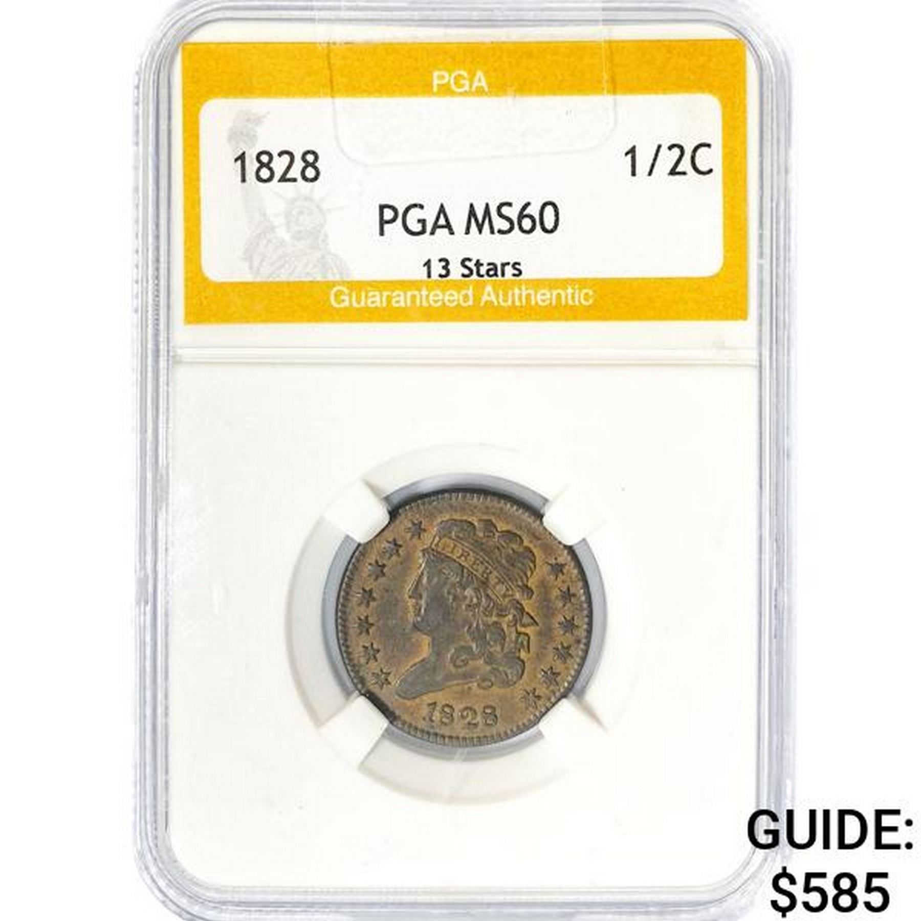 1828 Classic Head Half Cent PGA MS60 13 Stars