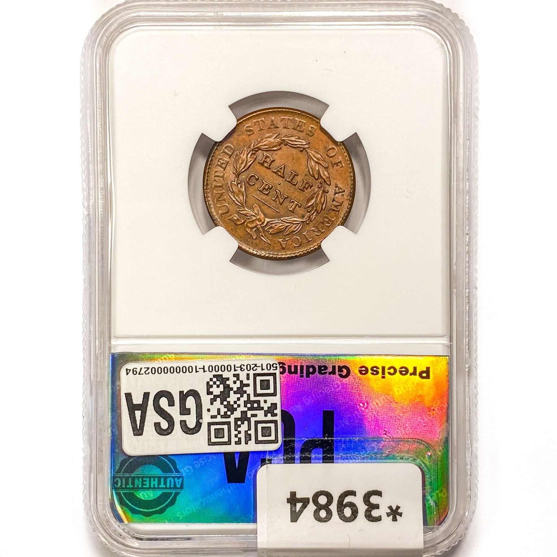 1828 Classic Head Half Cent PGA MS65