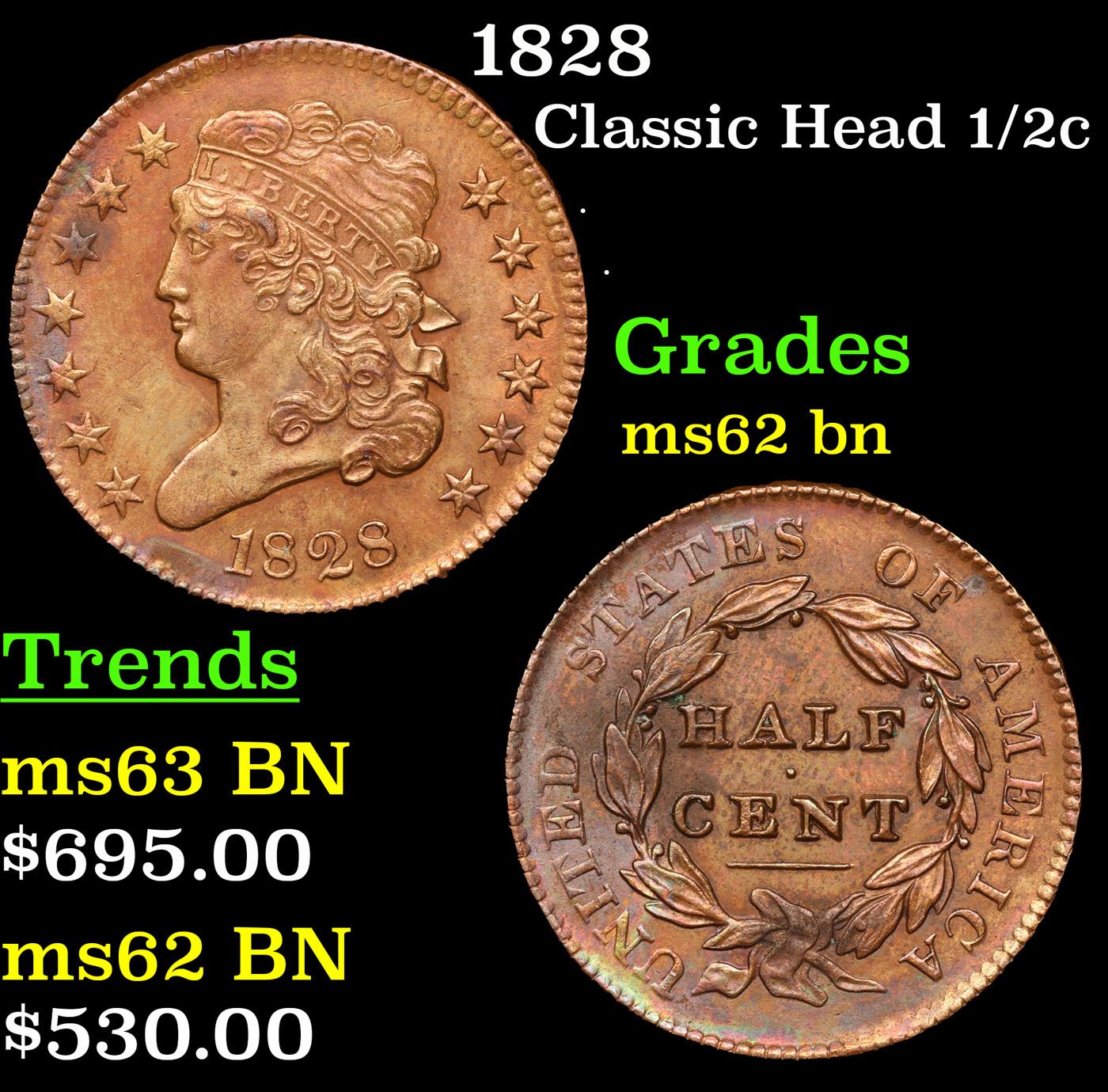1828 Classic Head half cent 1/2c Grades Select Unc BN. A Corey's Pick, Bid to Win Coin