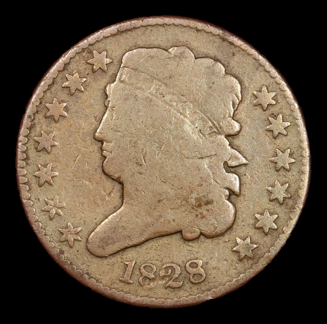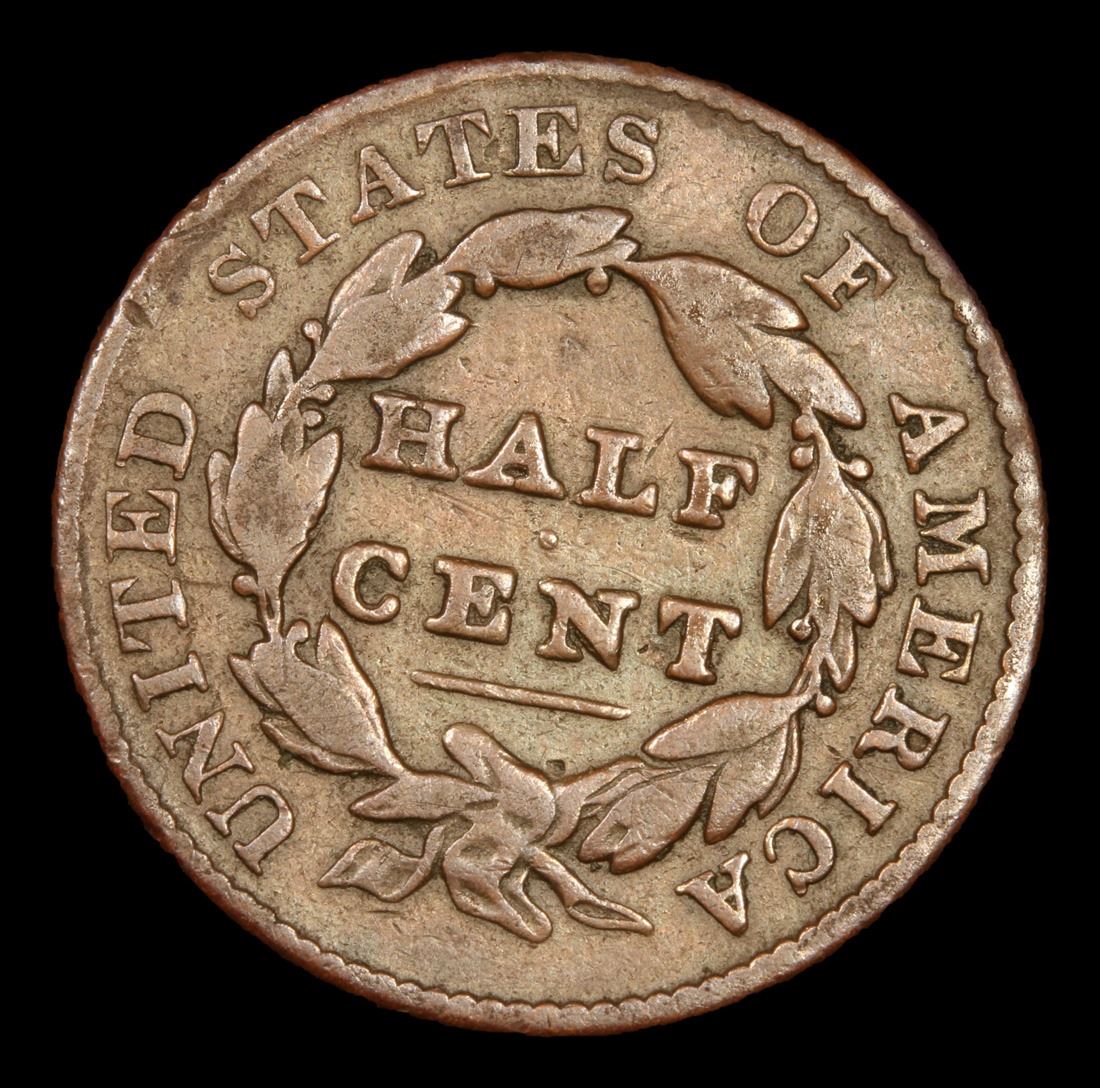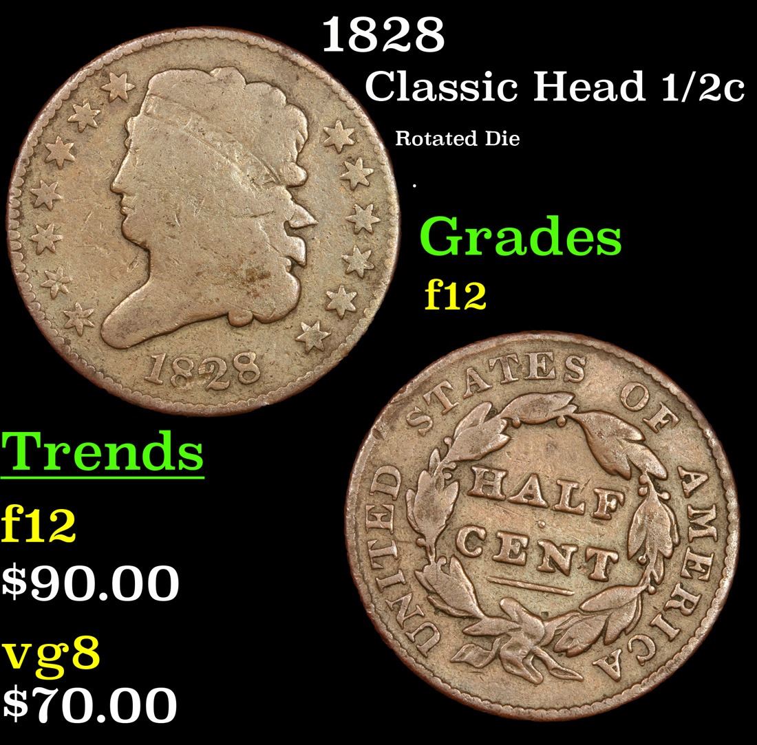 1828 Rotated Die . Classic Head half cent 1/2c Grades f, fine.
