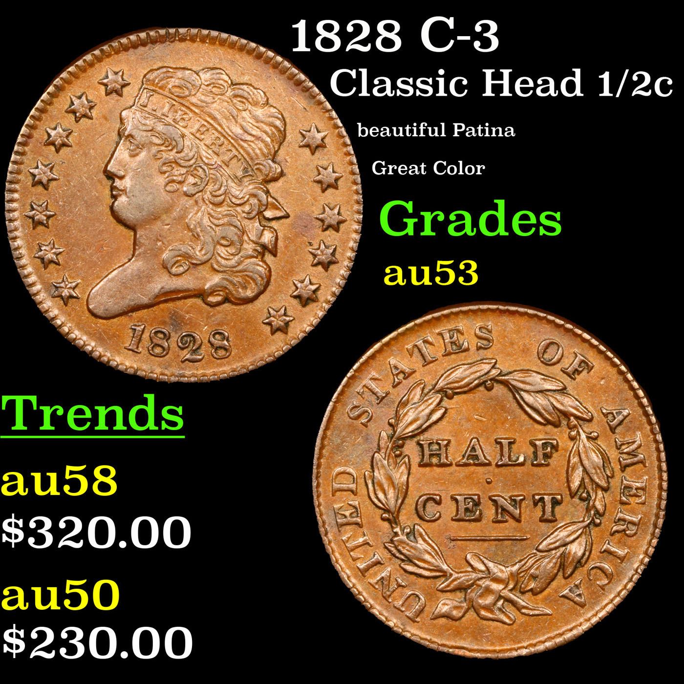 1828 C-3 Classic Head half cent 1/2c Grades Select AU.