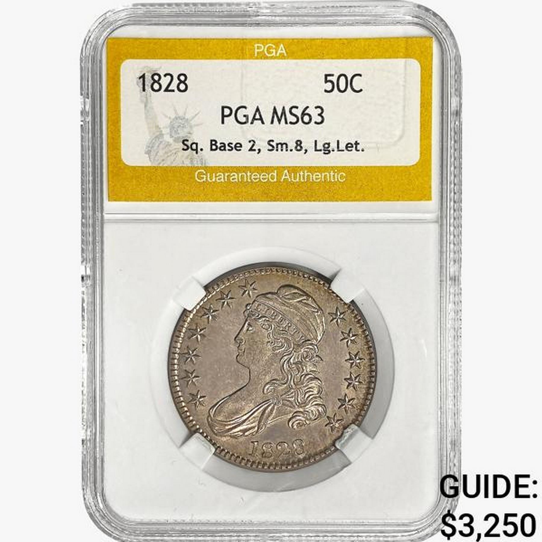 1828 Draped Bust 50C PGA MS63 Sq. Base 2, Sm.8, Lg