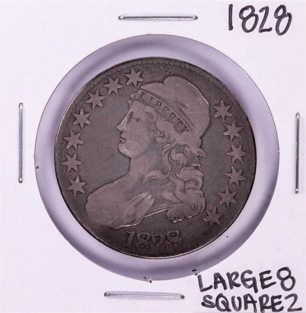 One 1828 Large 8 Square 2 Capped Bust Half Dollar Coin.